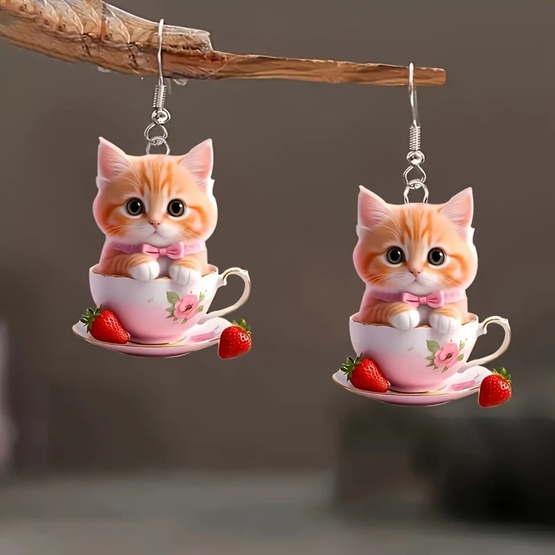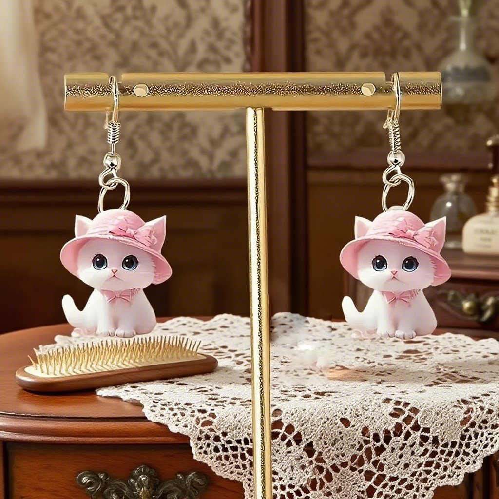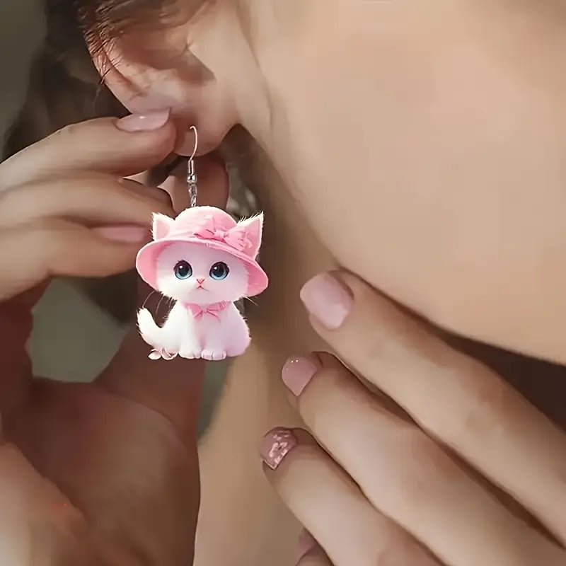 🎀With their playful pink hats and sweet kitten faces. these earrings turn everyday outfits into adorable statements of style.
