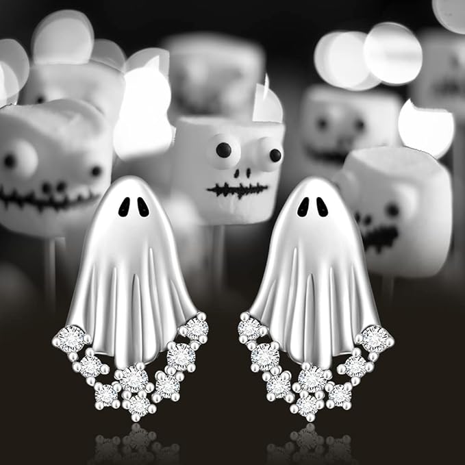 😍Add a dash of cuteness with these sparkling ghost studs that draw attention and add a playful Halloween charm.