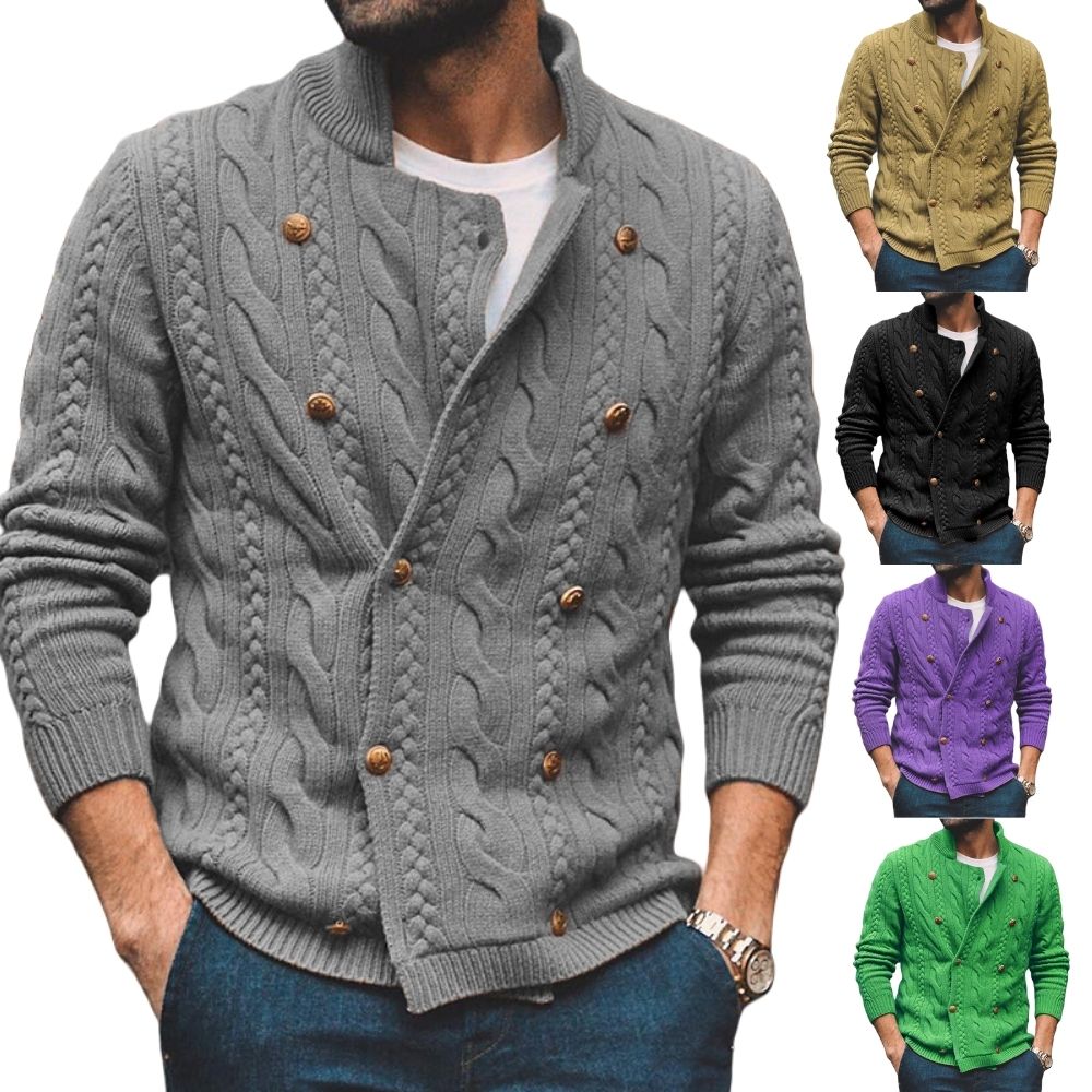 Men's Stand Collar Long Sleeve Casual Jacquard Sweater