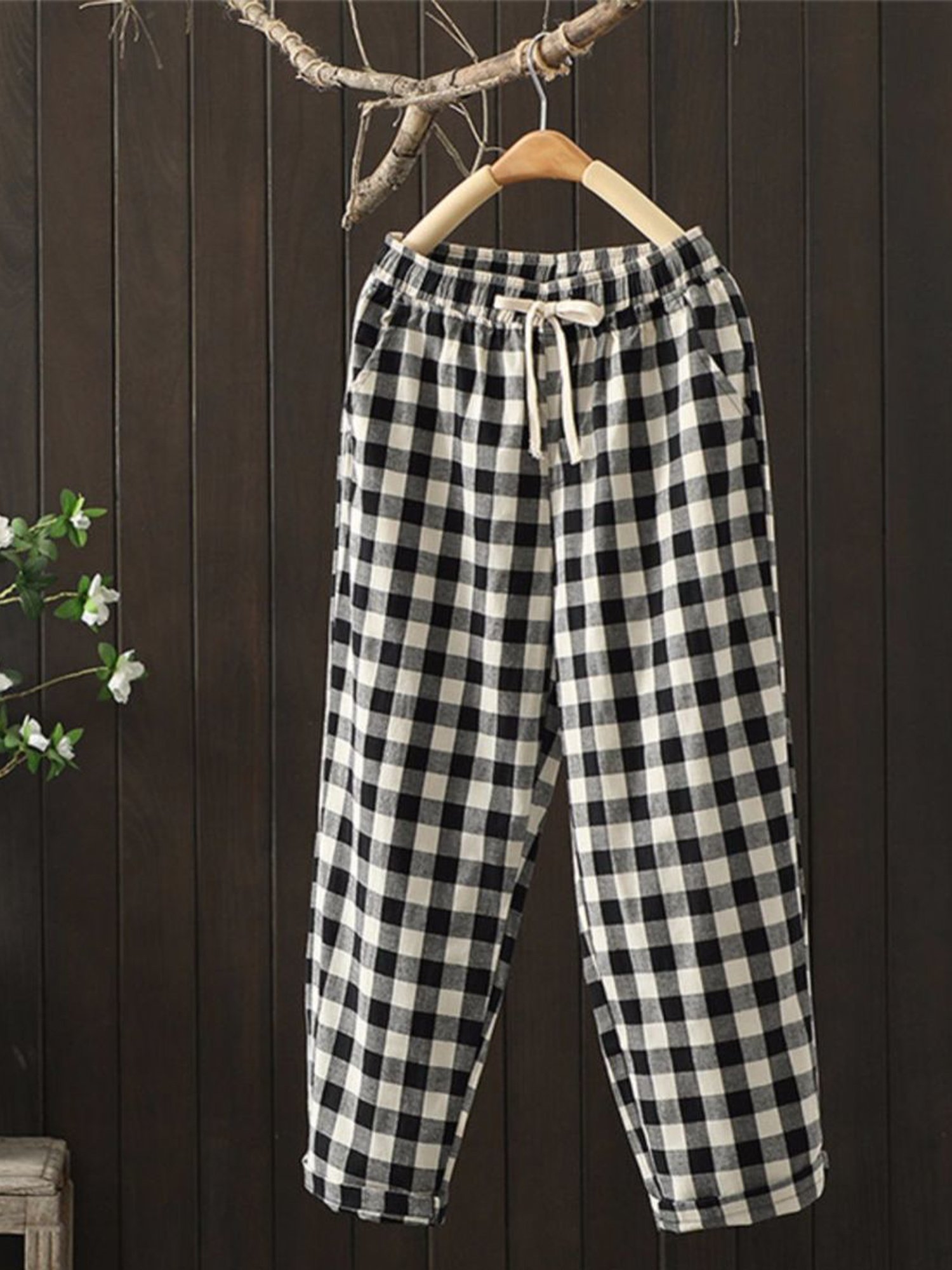Women's casual cotton linen loose trousers