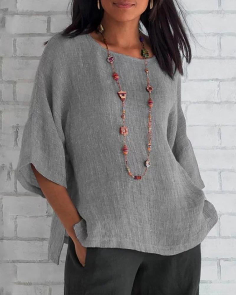 Solid color crew neck casual top