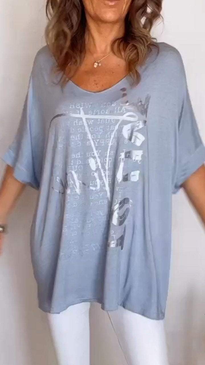 Women's V-neck Printed Mid-sleeve Casual Top