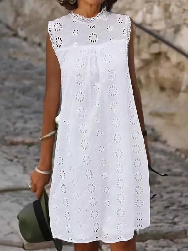 Casual Round Neck Sleeveless Lace Mini Dress