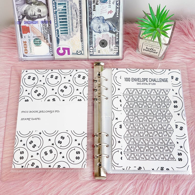 📏Comes with an A5 size binder (9 inches tall X 7 inches wide). 1 laminated reusable tracker. pouches either labeled 1-100 for the traditional way to save $5.050