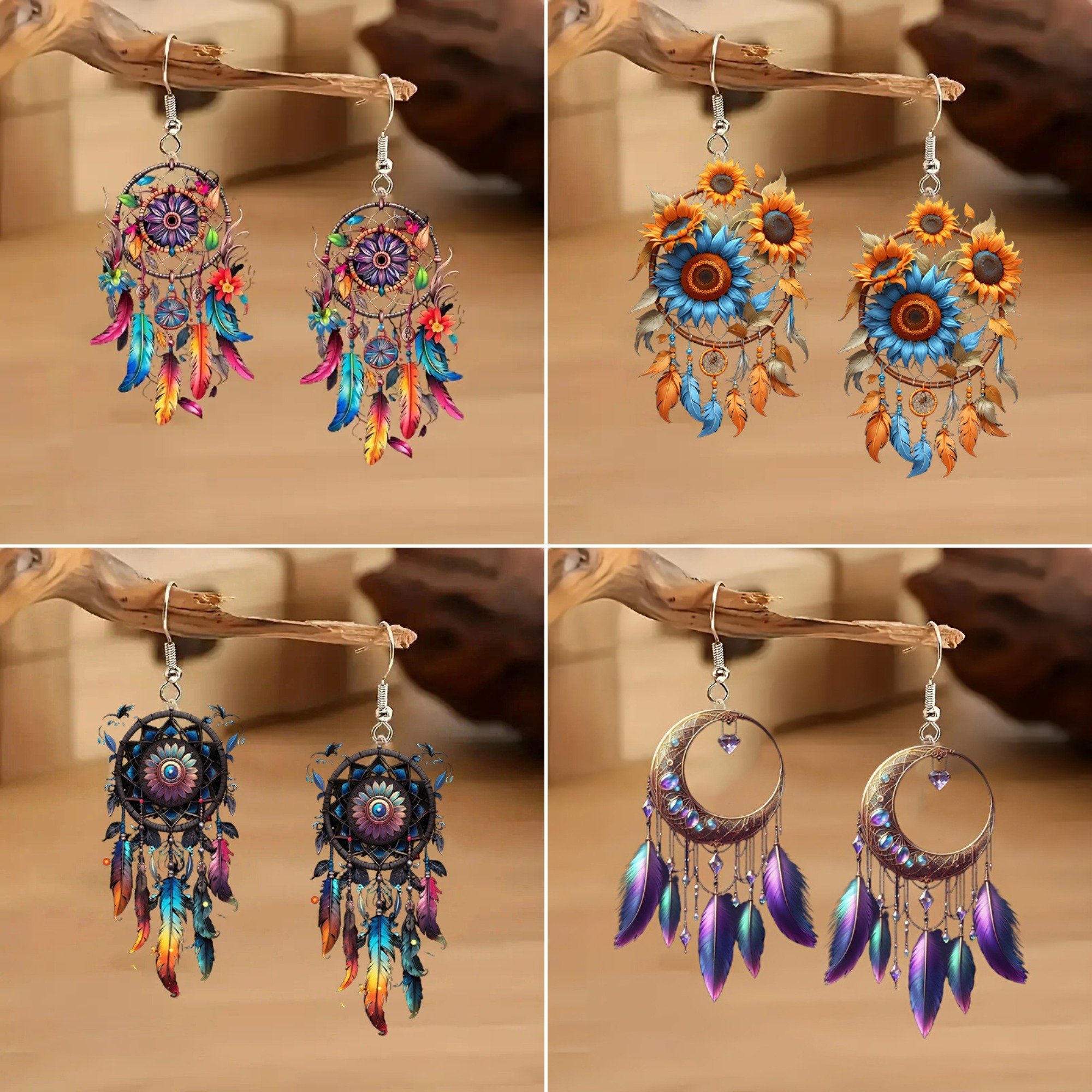 🪶🏵️Featuring intricate feathers and floral designs. these vibrant boho dreamcatcher earrings make a bold style statement while symbolizing protection. positivity. and self-expression.
