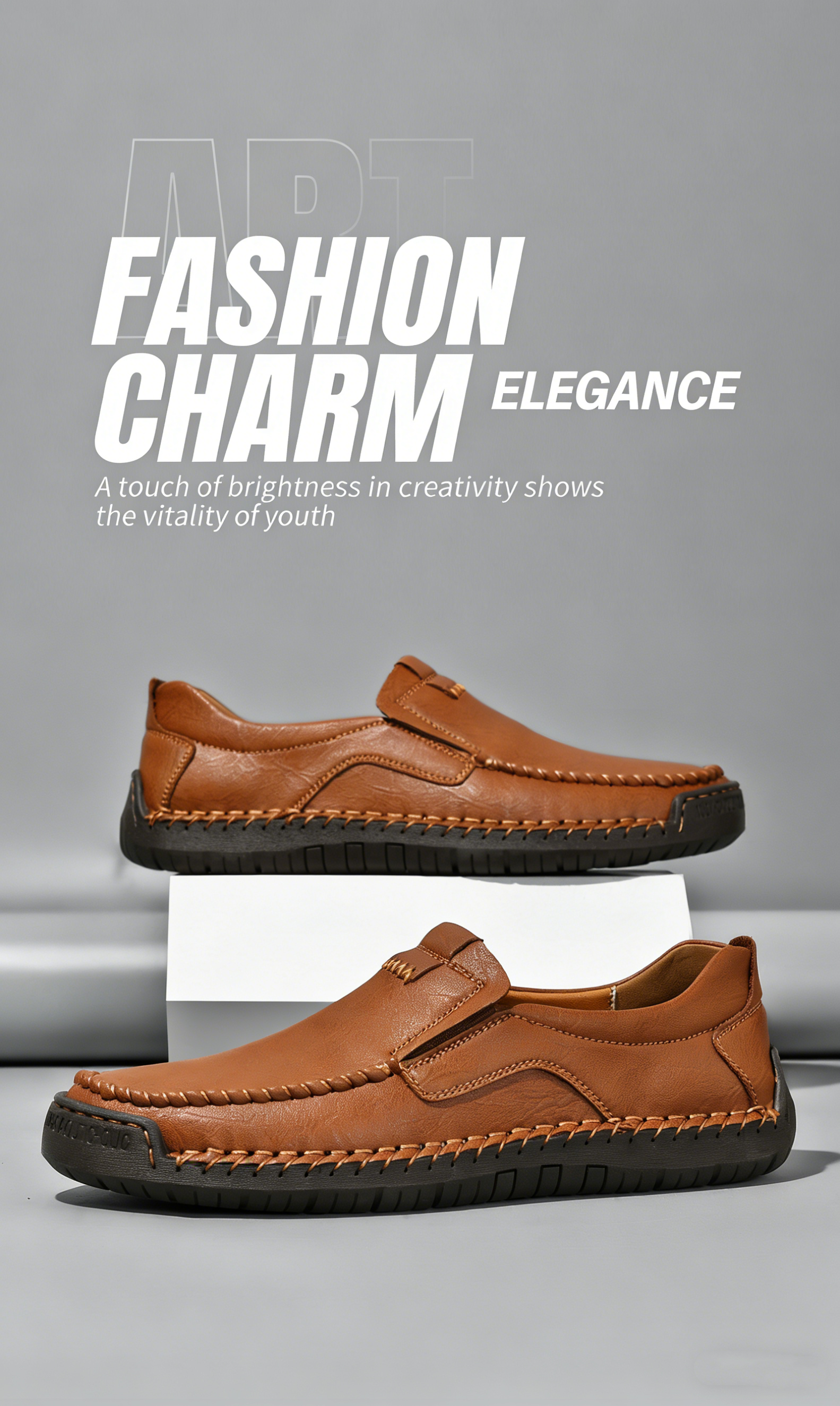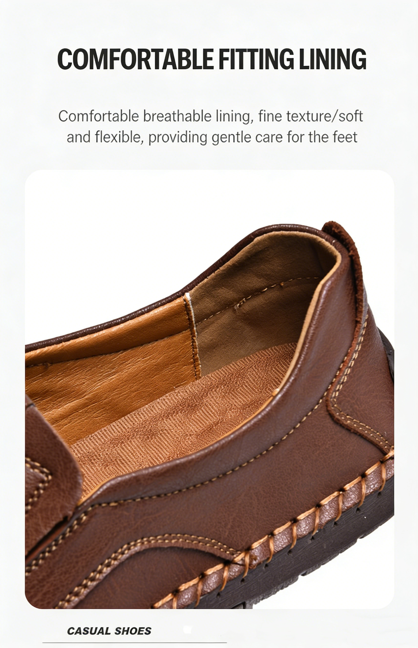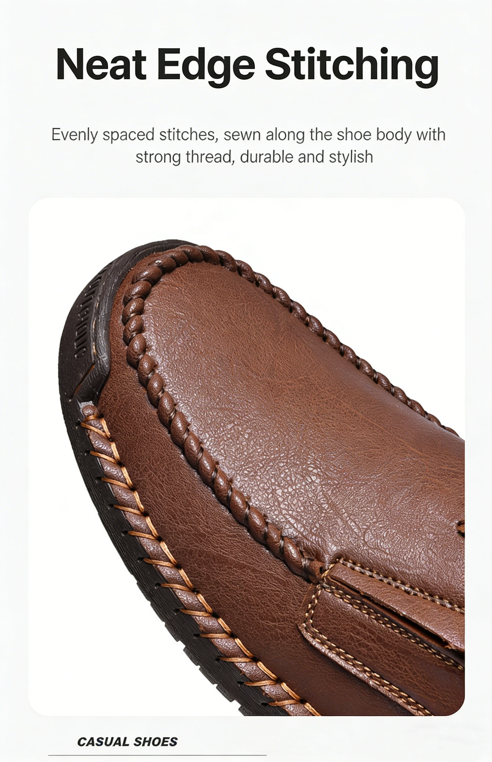 Men's Brown Genuine Leather Slip-On Loafers - Casual Comfort Shoes with Stitched Detailing