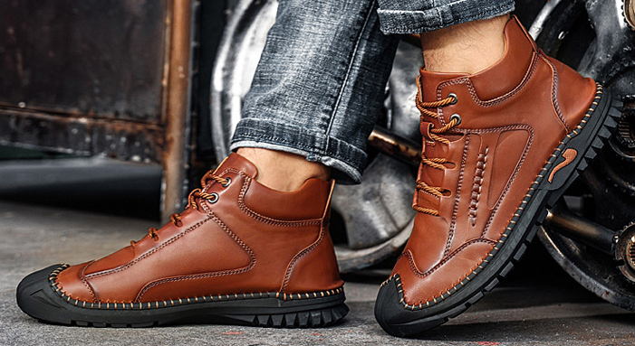 High-quality leather helps to be Water Resistant, Wind Resistant & Chemical Resistant. Keep your feet all-day dry, comfortable by blocking rain , and easy to clean with a cloth.