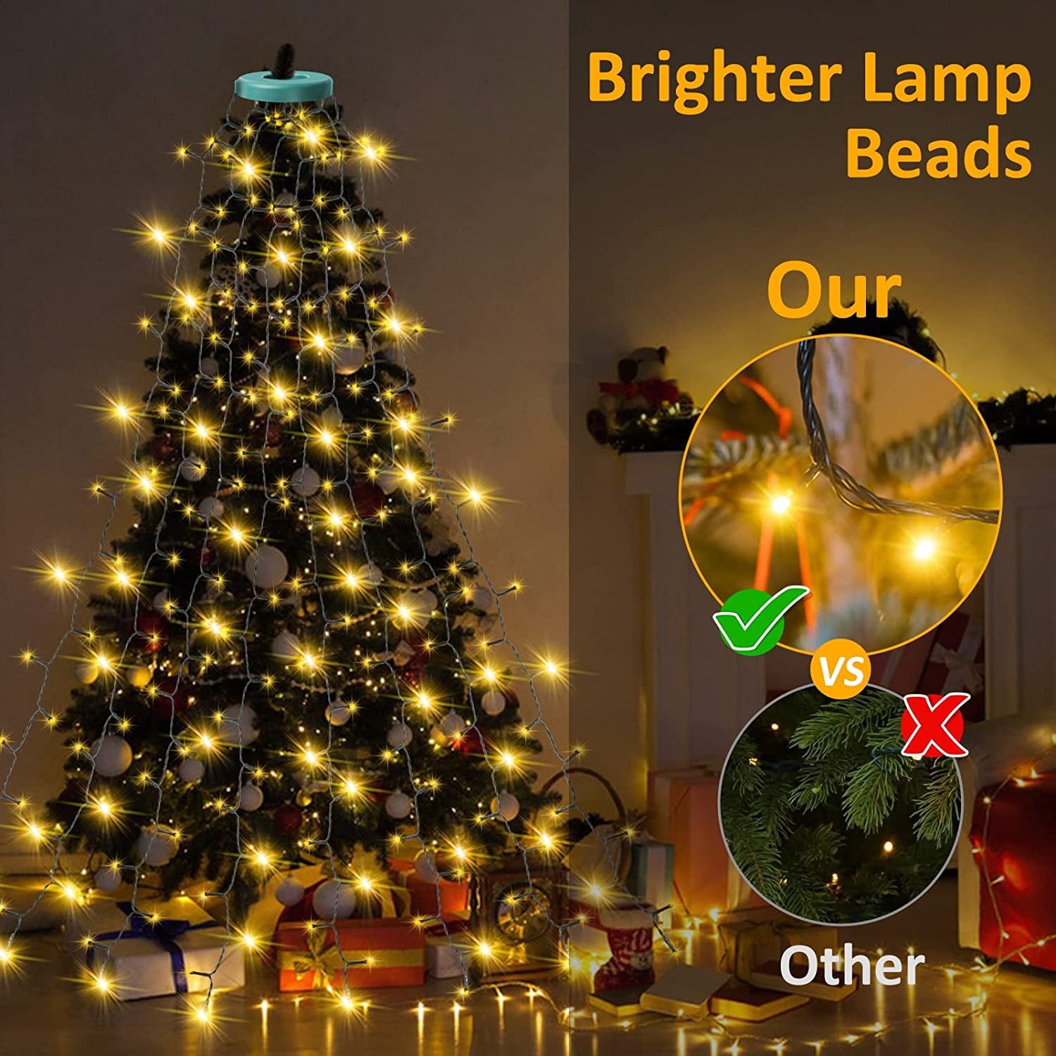 Super easy to Install! Just place the halo ring at the top of the tree and drop the light cords along the Christmas tree and you are done. No tools are required, allowing you to enjoy the extraordinary lighting effects of the Christmas tree faster and easier.