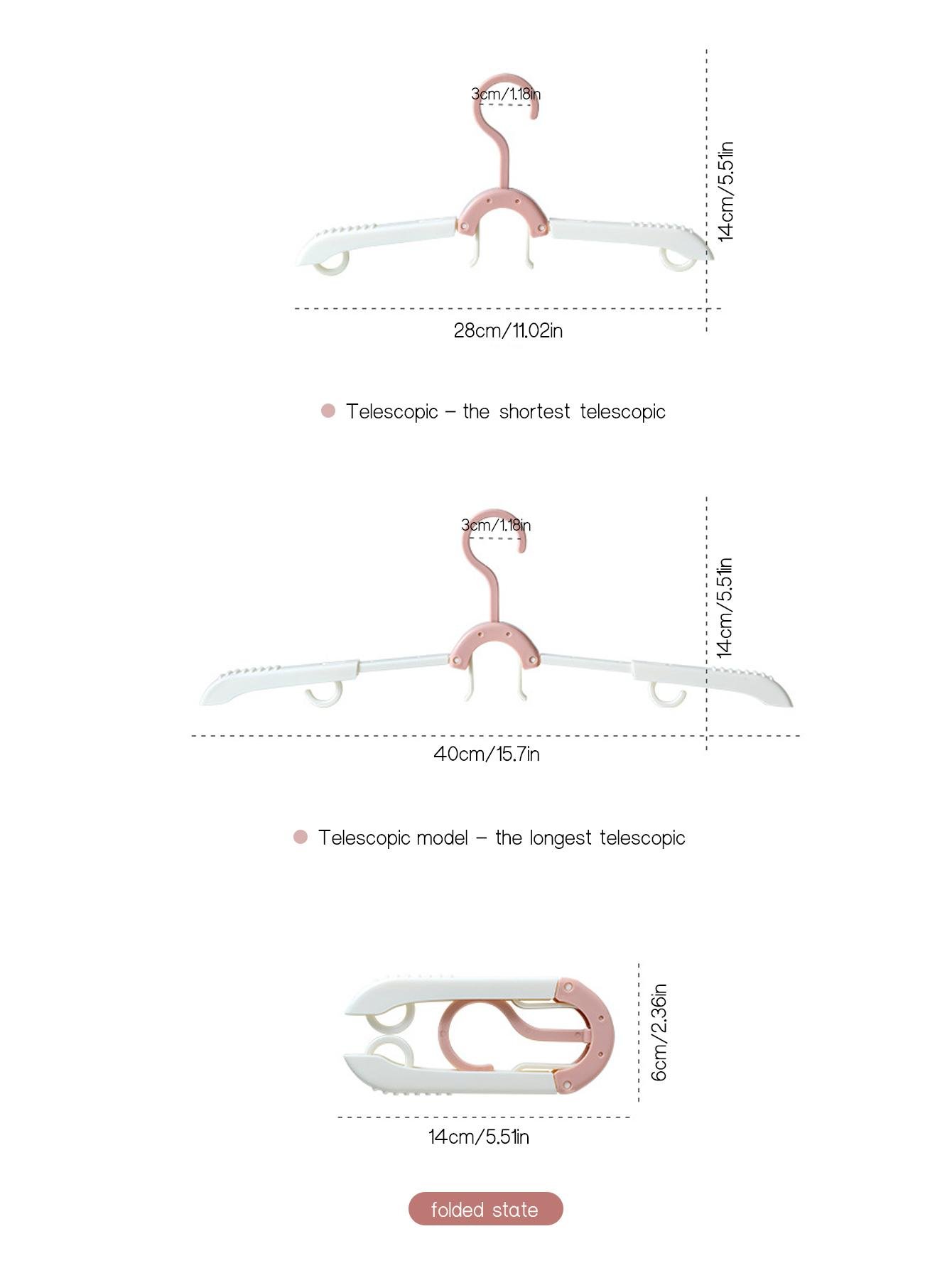 【Compact for Easy Storage】: These unique hangers have a folding design that makes them very compact for easy storing. It’s for baby’s clothes when it’s half unfolded. while it’s for adult’s clothes when it’s fully unfolded. Fold them twice to store or carry them. Space-saving and no hassle at all.