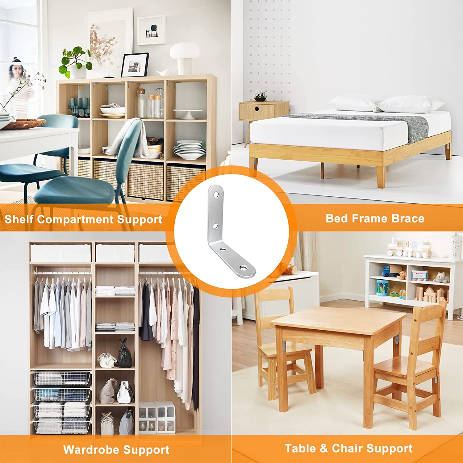 90 degree metal L brackets are not only suitable for building wood frames. but are also ideal for securing and reinforcing wood beds. cabinets. dressers. chairs. drawers. tables. windows. bookshelves. furniture. and more.🔩⚙